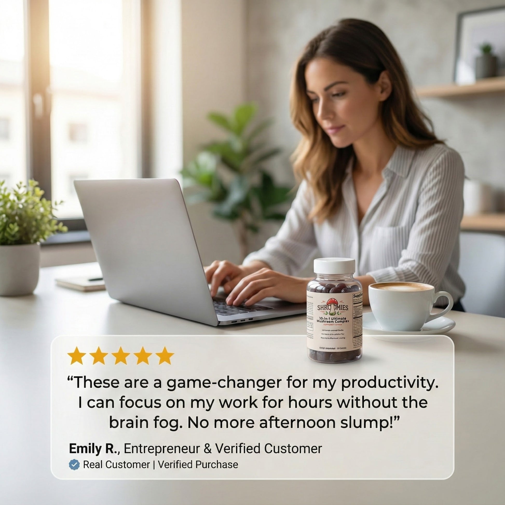 Our 10-mushroom blend delivers powerful nootropic compounds directly to your brain—no buildup period required, no waiting weeks to feel results. These bioactive metabolites work immediately to enhance mental clarity, sharpen focus, and support cognitive performance from day one.